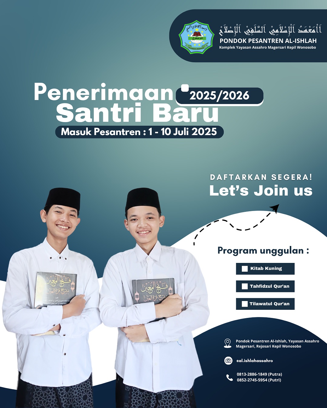 "Siapa bilang santri itu kudet? Di Al-Islah saya belajar bersosialisasi dan mandiri. Bekal agama dari pondok menjadi 'rem' dan pegangan saya agar tetap lurus di tengah pergaulan dunia digital yang bebas. Santri keren, santri modern!"